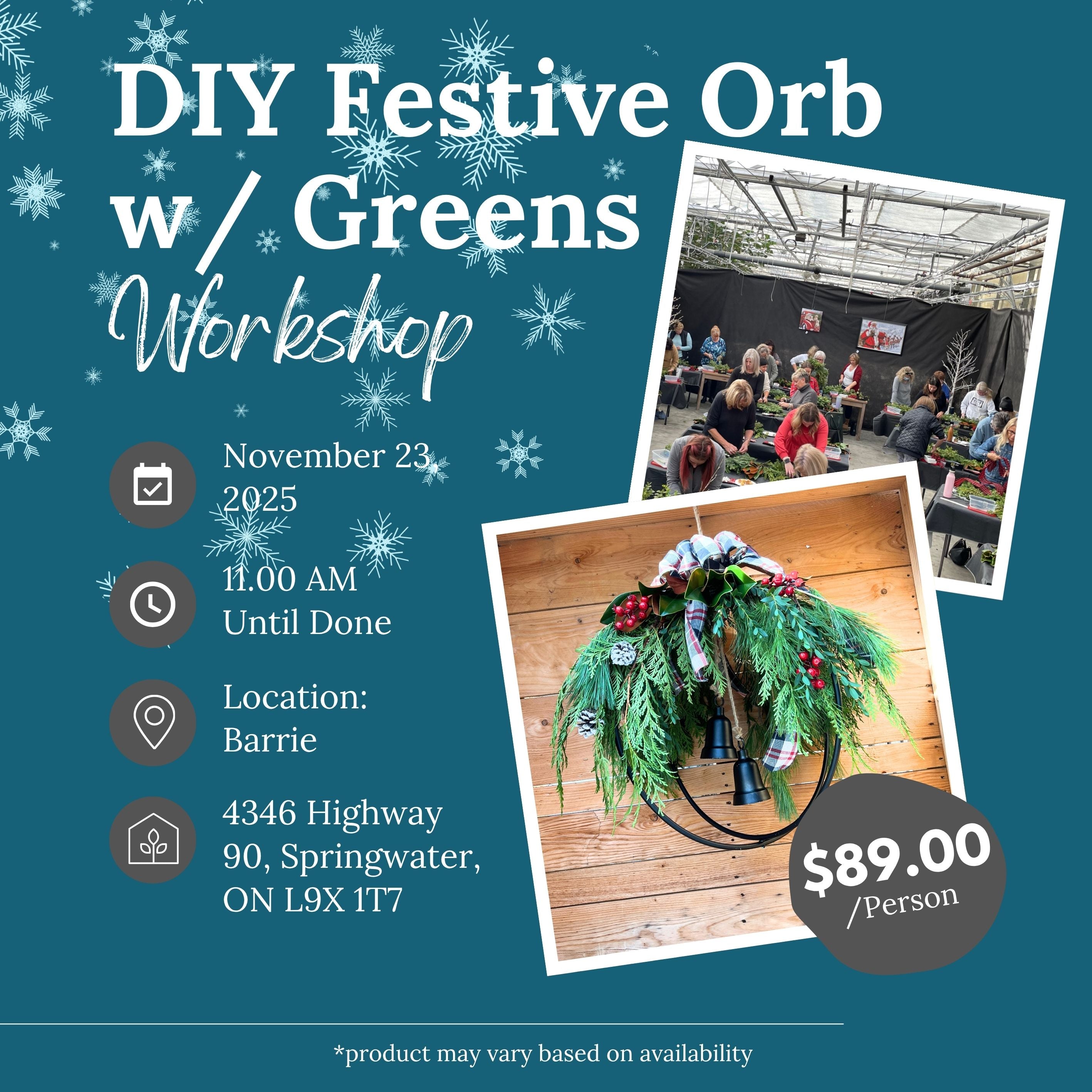 Ticket: DIY Festive Orb w/ Greens Workshop (Barrie Location) | November 23rd, 2025